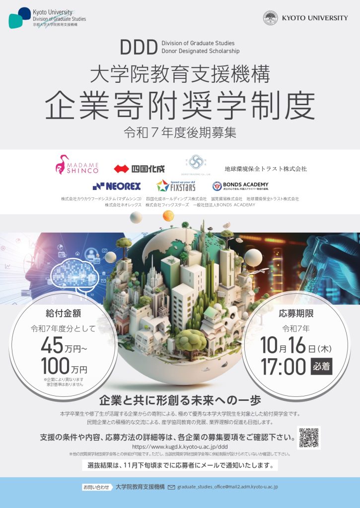 令和7年度後期大学院教育支援機構企業寄附奨学制度(DDD)の募集を開始しました。